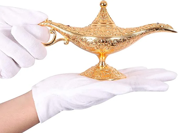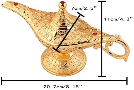 【Quality and Durability】 This Aladdin magic lamp is made of high-quality zinc alloy; long-lasting anti-oxidation, no rust, no fading, durable. For collection and viewing only, please do not use it as an incense burner.