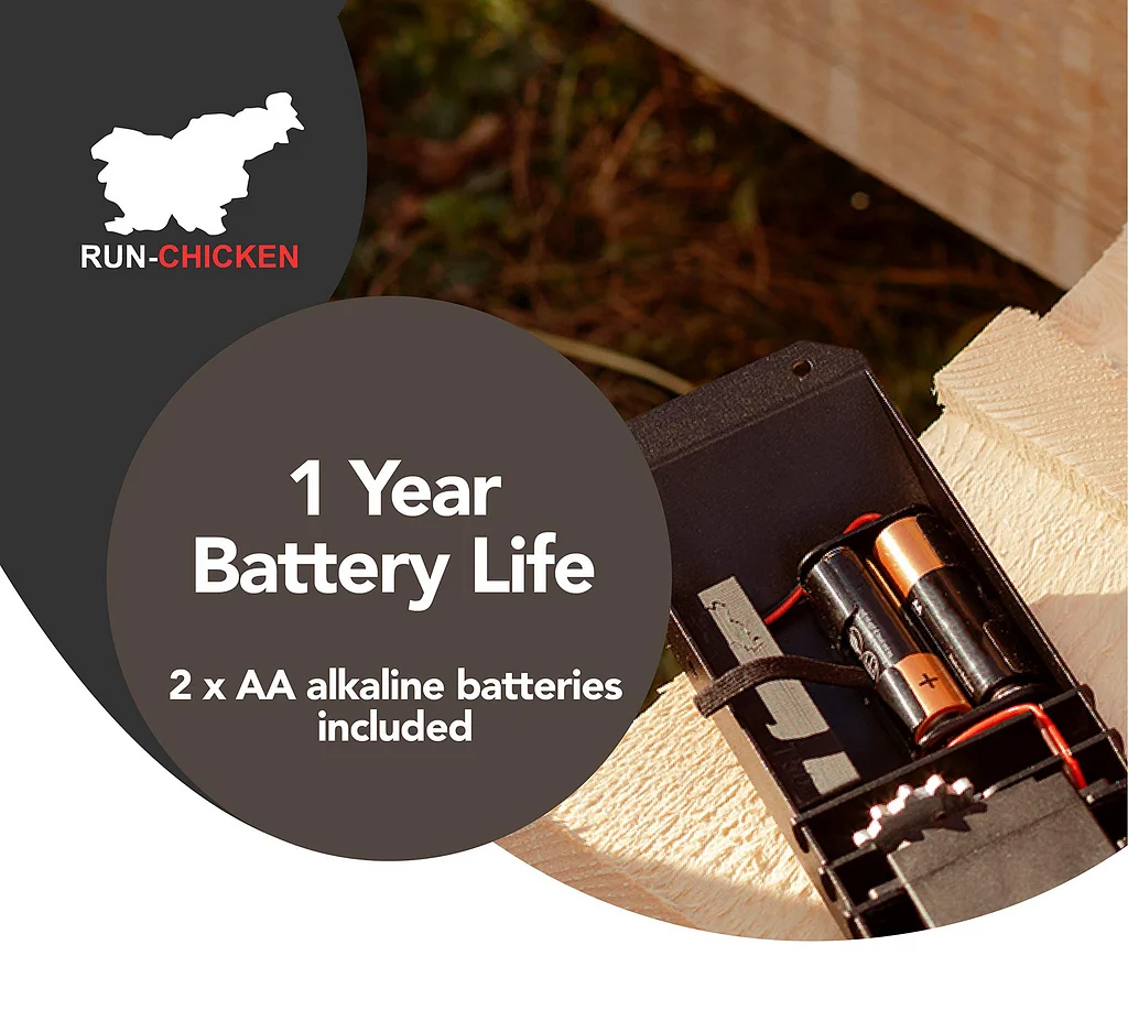 Upgrade your chicken coop with our door that works on batteries by itself.